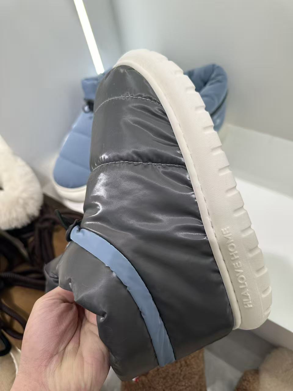 Den mest enestående egenskapen til disse dunfylte vanntette sklisikre bomullstøflene fra Lesijia Shoes er det vanntette stoffets øvre design. Med hyppig regn og snø om vinteren, enten du skal ut for å hente en pakke eller ta ut søpla, selv om du ved et uhell tråkker ned i en sølepytt, vil overdelen effektivt blokkere vann ute. Interiøret er fylt med dun av høy kvalitet, som er svært luftig og gir utmerket isolasjon, noe som umiddelbart gir deg en følelse av omsluttende varme. Vi har tatt "praktikken" til det ekstreme. En snøring er spesialdesignet ved åpningen av skoen; et forsiktig trekk strammer åpningen, hindrer kald luft i å komme inn og sikrer en tettsittende passform.