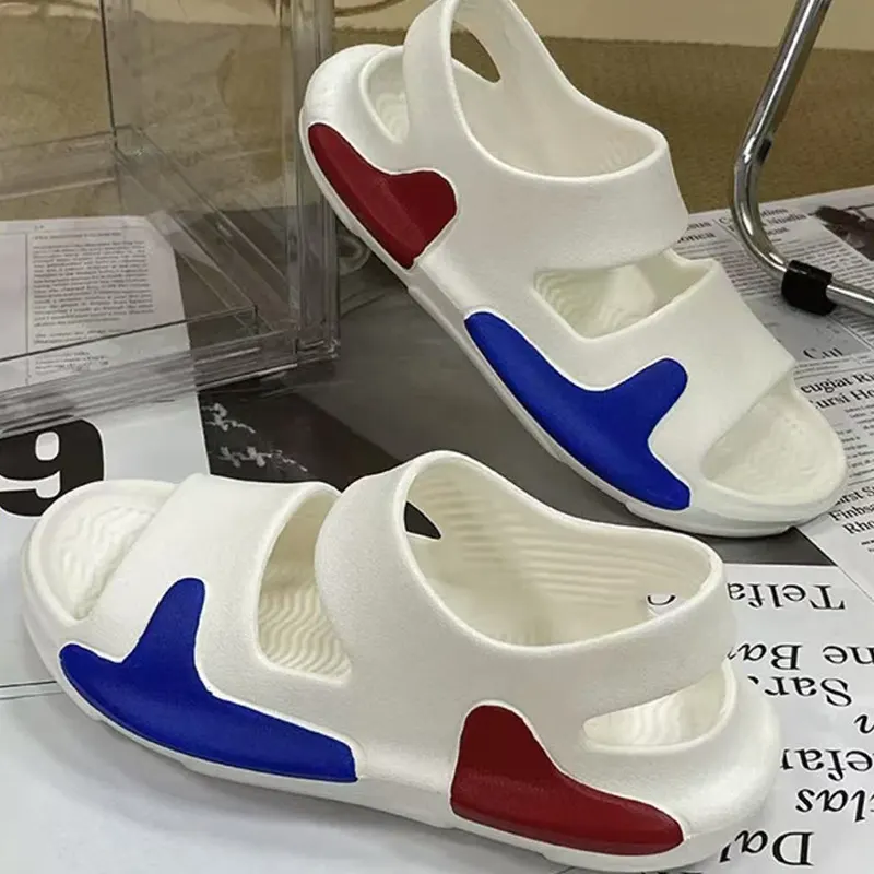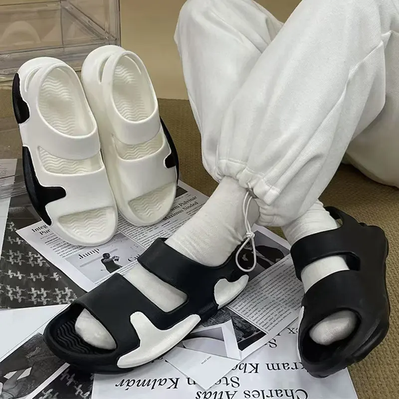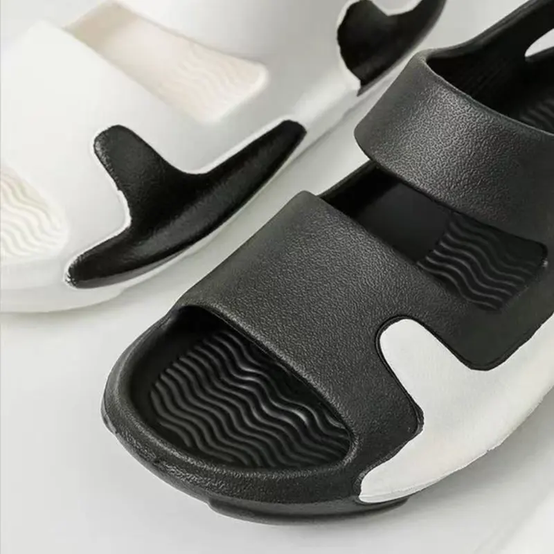 Våre tykke-soled høydeforbedrende par sandaler har en elastisk mellomsåle på omtrent 3 cm tyknet, noe som gir en behagelig følelse for føttene mens du modifiserer benformen for å gjøre den slank og slank. Den utdypede geometriske anti-skli-tekstur har sterkt grep, stabil struktur og er ikke lett å skli når du tråkker på vann. Vi bruker injeksjonsstøping og skummingsteknologi, støping i ett stykke, og det er ikke lett å deformeres etter langvarig slitasje.